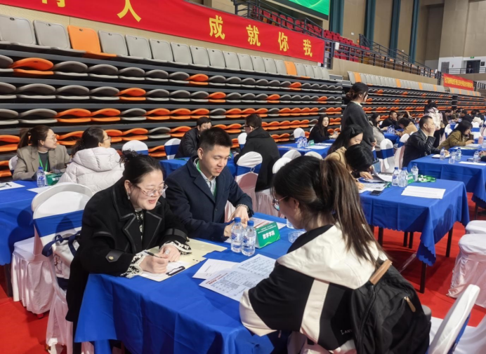 本次双选会汇聚840余家优质用人单位,涵盖金融、科技、教育、大数据分析等多个领域,精准契合数学学院专业人才培养方向与就业需求。现场气氛热烈,数学学院2026届毕业生携带精心准备的简历,主动奔赴心仪企业展位,与招聘负责人深入交流,详细咨询岗位要求、职业发展路径、薪酬福利等关键信息,充分展示自身专业素养与综合能力。